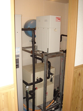 | 設備 | 地中熱ヒートポンプ(9.5kW~10.5kW) 太陽光発電(3.36kW) 太陽熱温水器(2.87平方メートル) |