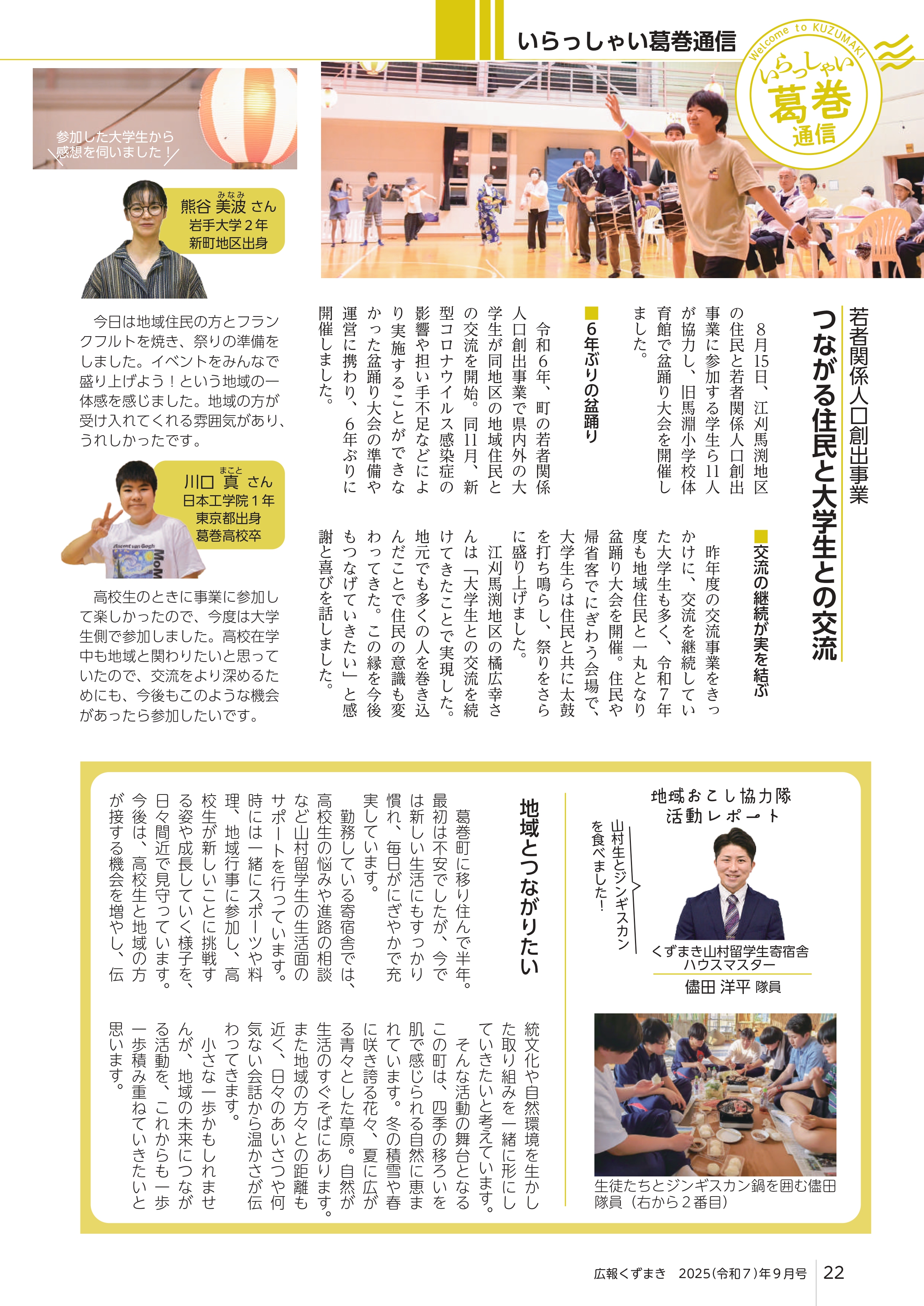 - 地域おこし協力隊レポート くずまき山村留学生寄宿舎ハウスマスター儘田洋平隊員/地域とつながりたい