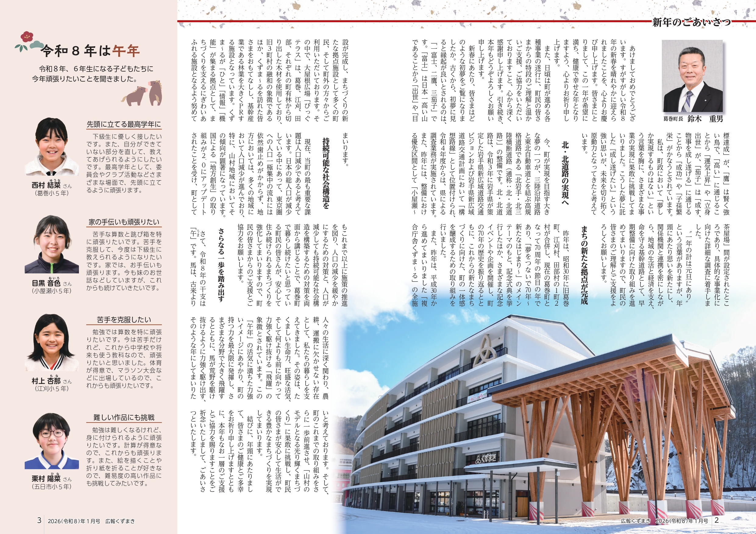 - 令和8年は午年 6年生になる子どもたちに今年頑張りたいことを聞きました。