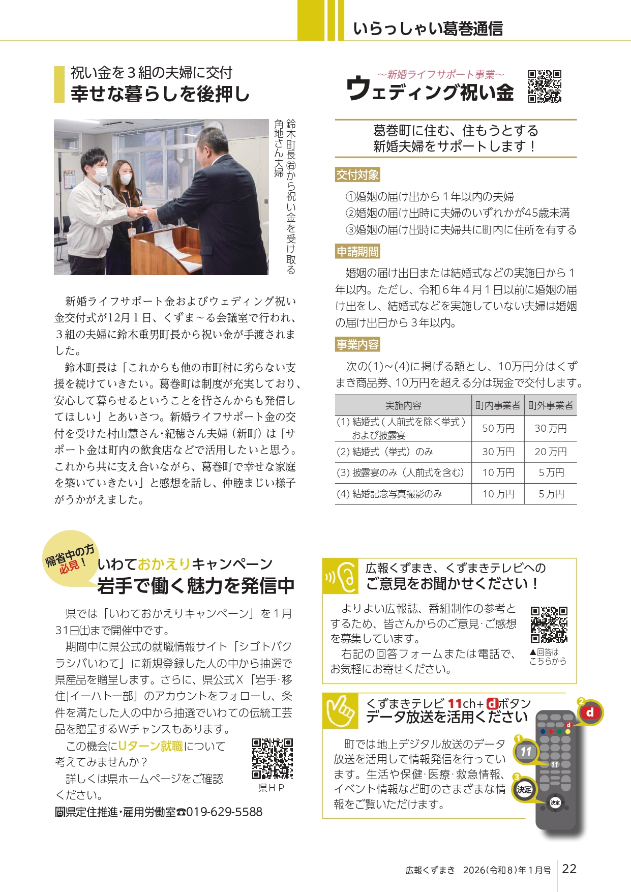 葛巻町に住む、住もうとする新婚夫婦をサポートします!